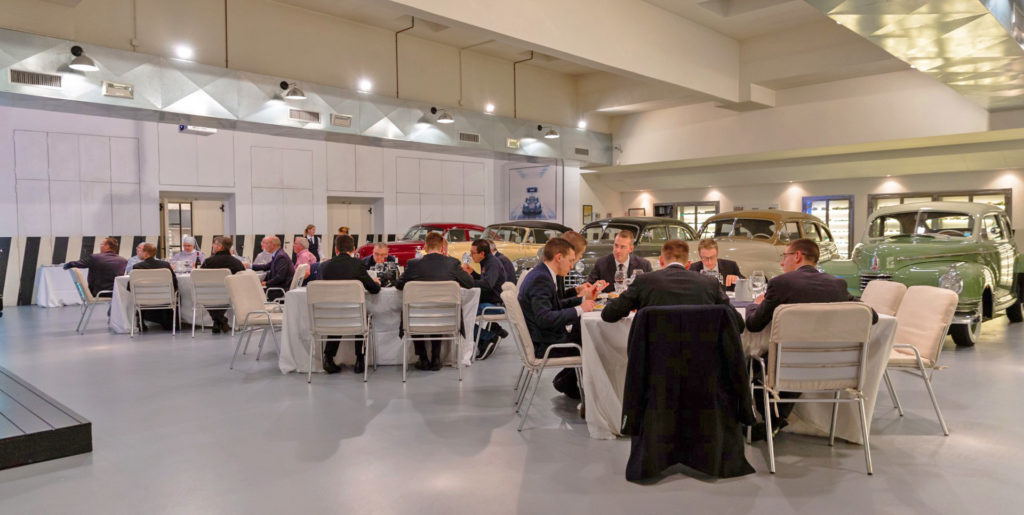 E’ stato come tornare indietro nel tempo. Cucinare e mangiare vicino a storiche Cadillac, Packard e Buick appartenute al Garage Nobile del Vaticano.